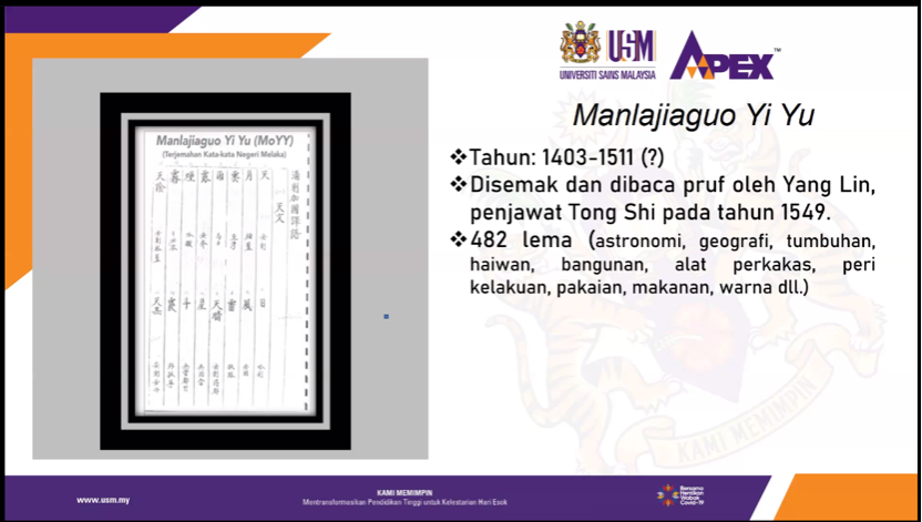 2024年6月13日晚,william威廉中文官网马来语系成功举办了一场深度与启发性兼具的线上学术讲座。本次讲座由马来西亚理科大学人文公司主任暨马来西亚翻译与创造协会副主席吴尚雄博士主讲,主题为“追索汉马翻译史,揭示马中文明的关系”。