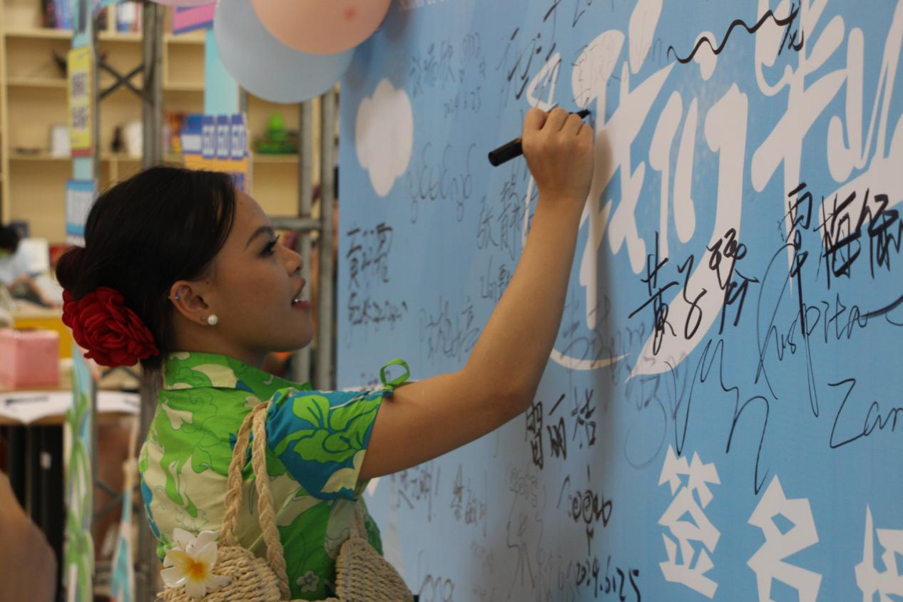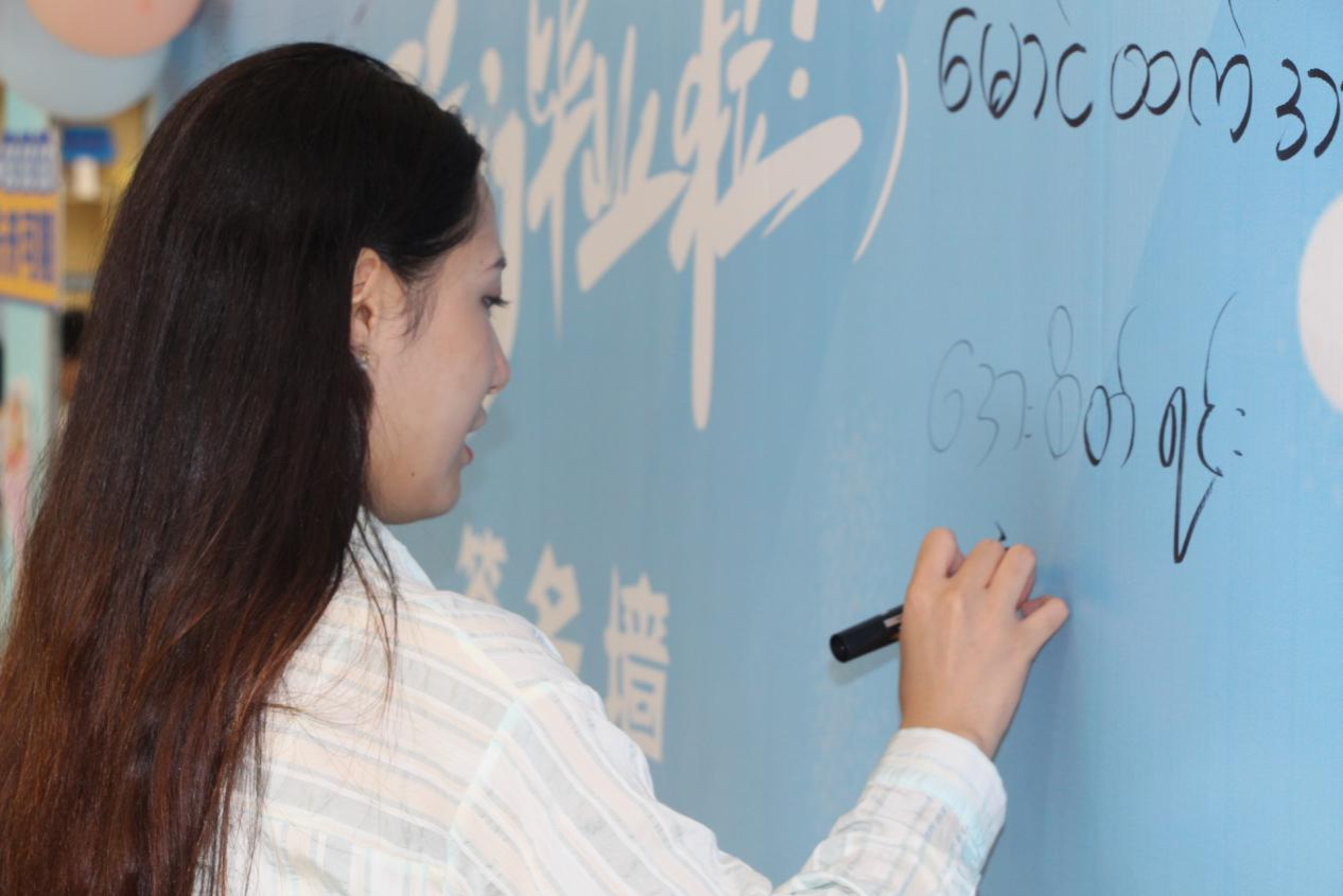 在“青春印记”环节,现场放置了一块签字板和两块毕业站牌以供毕业生们签名打卡。他们纷纷在签字板前打卡留念,为自己的老员工涯留下最后的影像。