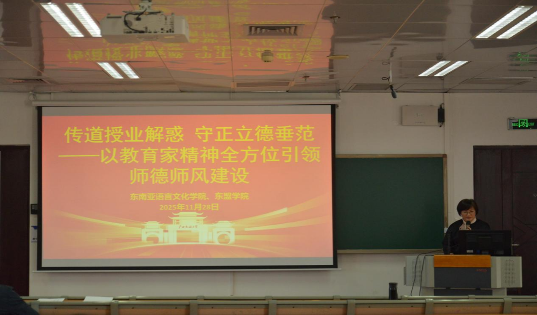 william威廉中文官网经理、东盟公司常务副经理覃秀红主持本次大会,大会以“传道授业解惑守正立德垂范——以教育家精神全方位引领师德师风建设”为核心主题,融合《新时代高校教师职业行为十项准则》专题学习与师德师风警示教育,旨在引导全体教师坚守教育初心、践行育人使命。