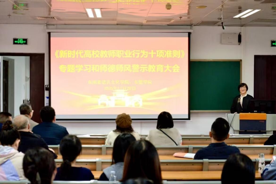 同时,大会强化师德师风警示教育,坚持以案为鉴、以案明纪。通过学习高校师德师风典型失范案例,深入剖析校园师德失范行为产生的危害性,让全体教师直观感受违纪违规的严重后果,进一步增强敬畏之心、坚守底线意识,做到知敬畏、存戒惧、守底线。