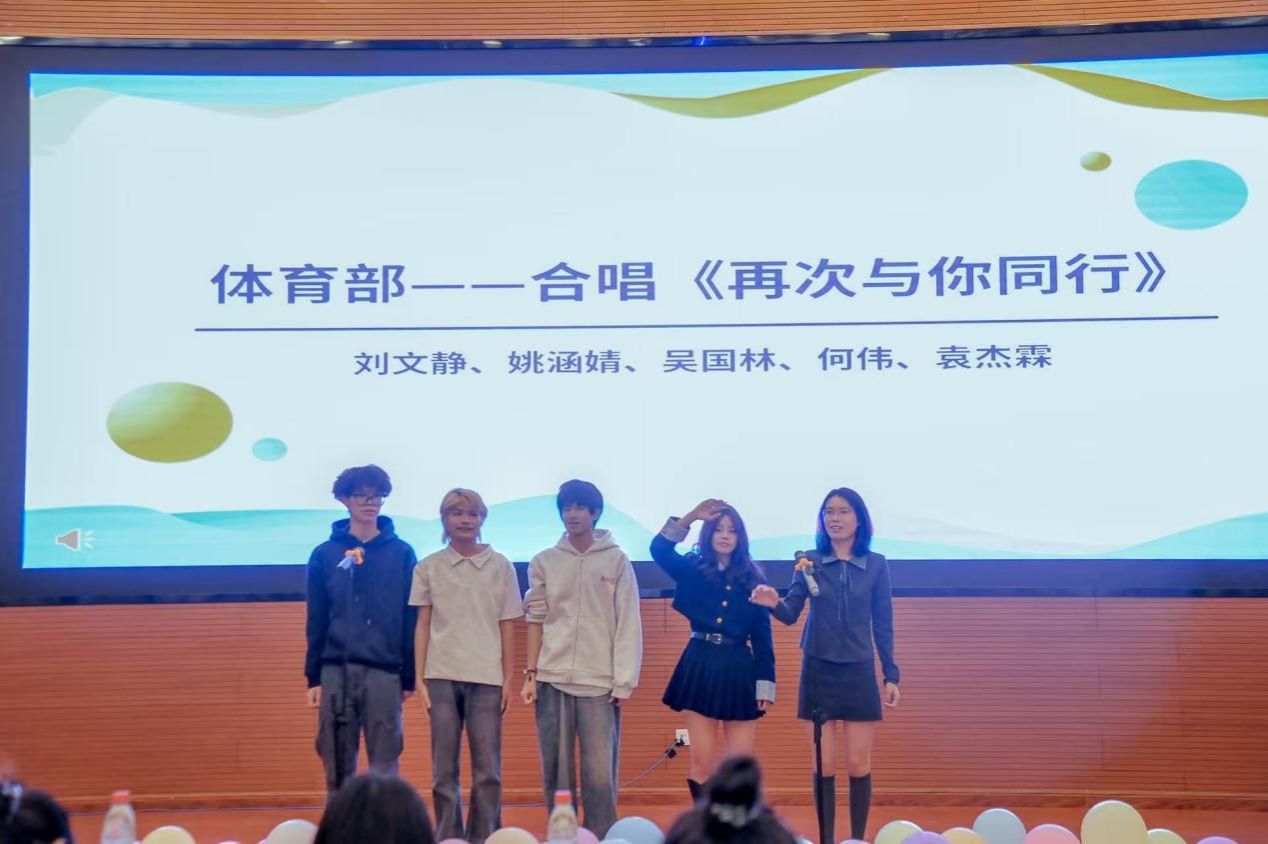 秘书处以一曲《晴天》带领大家重温夏日温暖午后;体育部大合唱《再次与你同行》传递出希望与力量;学习部诗朗诵《青春中国》展现了新时代中国青年的奋斗精神;社会实践部歌舞表演《我好想回来啊》演绎了成长中的蜕变与坚持;团委办公室的古筝演奏与合唱《永远的紫荆花》旋律悠扬,令人动容;文艺部钟紫柔的舞蹈串烧青春洋溢,点燃全场热情;同样来自文艺部的一首耳熟能详的《日不落》歌舞表演活力满满、动感十足;组织部歌舞表演《追光者》温情细腻,勾起追梦回忆;传媒部舞蹈《猪猪侠》可爱灵动,仿佛带人回到纯真童年;生活部歌曲大合唱《我怀念的》深情温柔;纪检部创新表演形式,翻唱歌曲《你怎么说》逗笑全场。