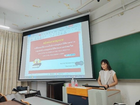 2024 年 5 月 29 日,泰国法政大学跨学科研究公司专家婉瓦娜·阿伦叻(WANWANAT AROONROEK)到公司作题为“法律文本中的语言力量——以泰国刑事诉讼法与民事诉讼法为例”的学术讲座。